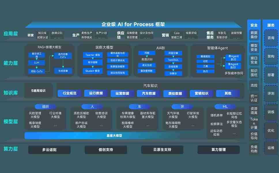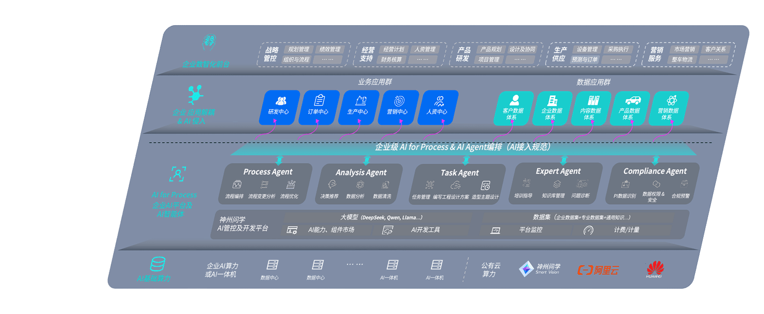 端到端的一站式AI工作空间深度融合了从企业战略规划到日常经营的全流程业务板块,,,定向解决车企内部领域多、、、部门多、、、、链条长、、场景碎片化等难题,,,支持车企快速构建以AI为核心的生产力写作体系,,,,实现任务执行与AI能力的无缝集成与交互
